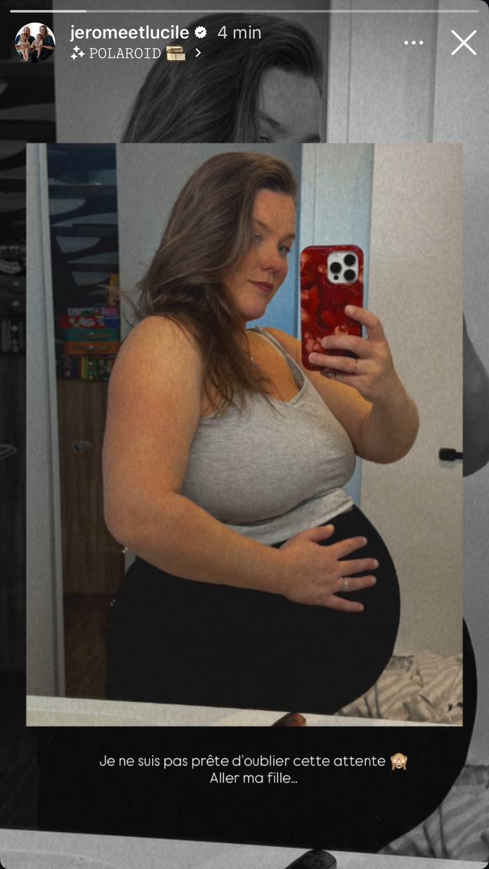 Lucile partage une photo de sa silhouette très arrondie, accompagnée d’un tendre message adressé à son bébé : «Allez ma fille…». Une façon de dire que la rencontre se fait attendre… «Je ne suis pas prête d’oublier cette attente», confie-t-elle également. Sur le cliché partagé dans sa story, Lucile apparaît de profil, capturant son reflet dans un miroir. Dans un débardeur gris clair et un pantalon sombre, elle pose une main sur son ventre très arrondi, comme pour souligner les derniers instants de cette grossesse.