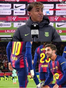 Au lendemain d’une victoire aussi précieuse qu’inattendue, Lamine Yamal se retrouve une nouvelle fois au centre de l’attention médiatique. À seulement 17 ans, le prodige du FC Barcelone attire déjà les caméras avec une maturité et une sérénité qui déconcertent même les journalistes les plus aguerris. Pourtant, ce n’est pas son but décisif ni son rôle majeur dans le succès de son équipe qui ont fait trembler les réseaux sociaux, mais bien une phrase simple, prononcée avec un calme presque troublant : « Le match important, c’était ce soir. La semaine prochaine, ce n’est que le prochain match. »